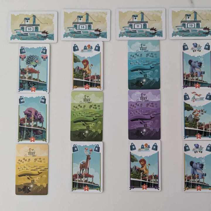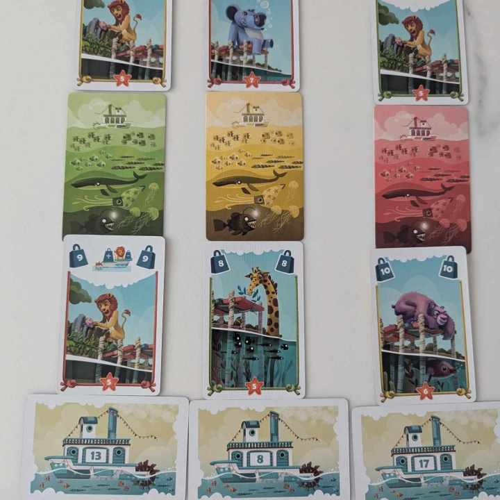 Ponemos una carta de barco por cada jugador. En cada barco pueden ir 3 animales (cartas).