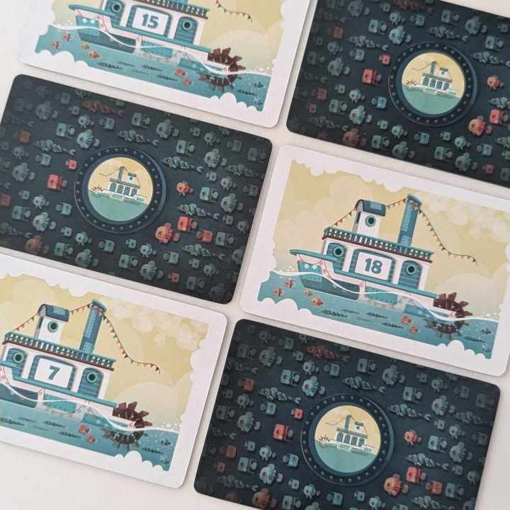 - Se comprueba el peso, si la barca puede soportar el peso de todos (indicado por el número de la barca) zarpa y puntúas, si no, se hunde.