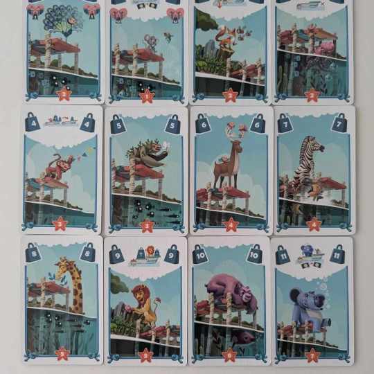 - 60 cartas de animal (un set de 12 cartas para cada jugador), algunas con efecto especial: