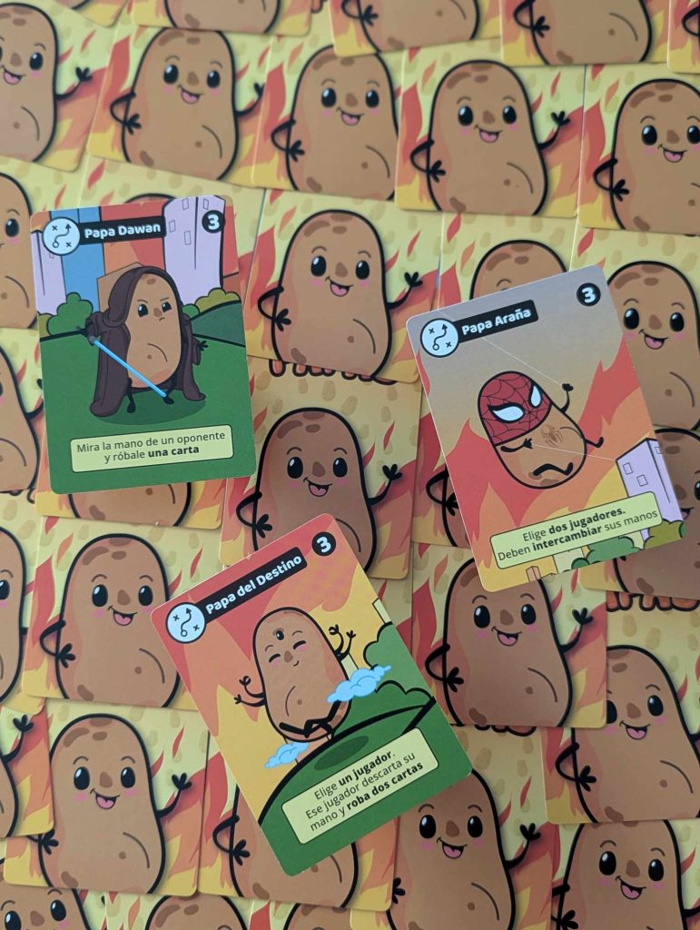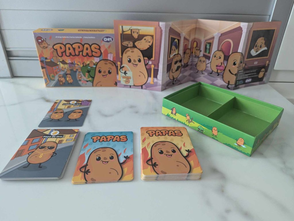 Papas es un juego de mesa en el que puede que pierdas amistades con mucha interacción (tendrás que elegir entre atacar y defenderte…), divertido y con un arte simpatiquísimo.