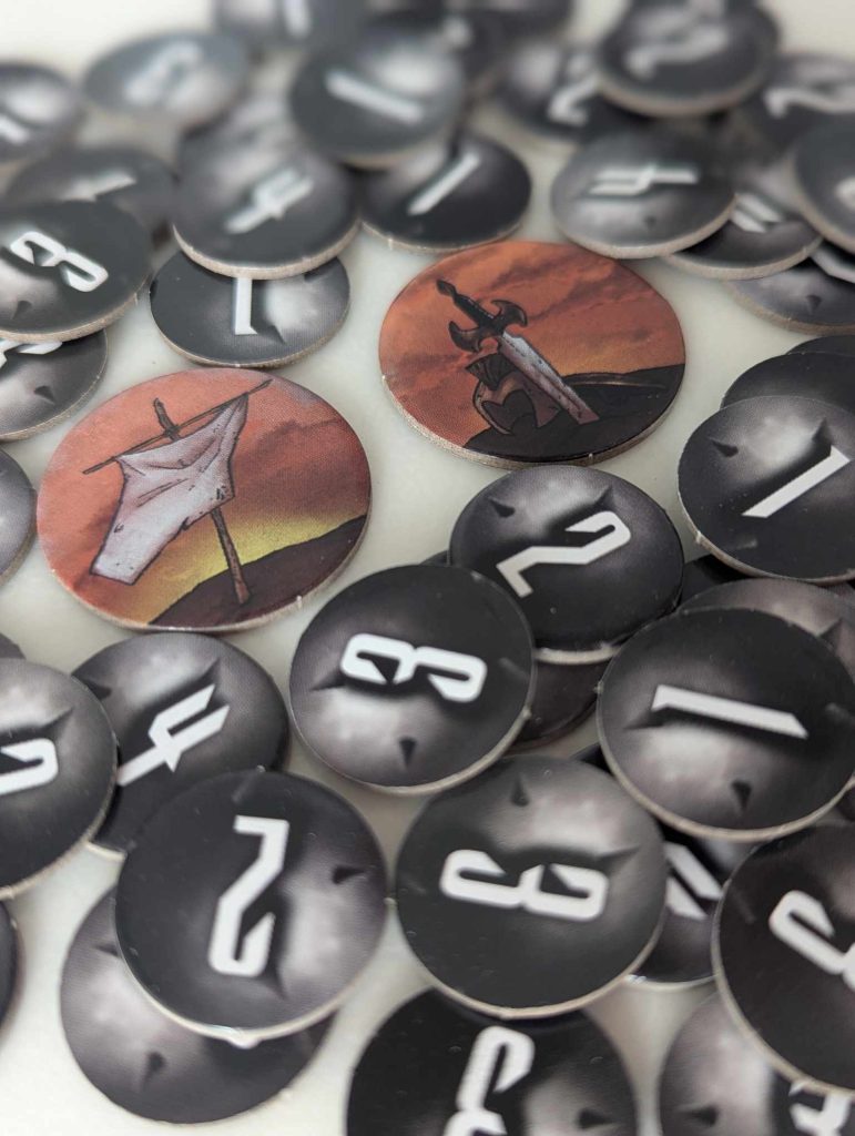 - Comparación de fuerza: sumando los valores base de fuerza de sus tropas junto a las fichas.