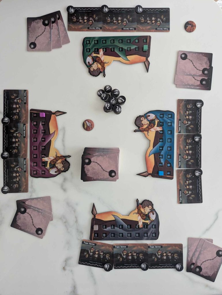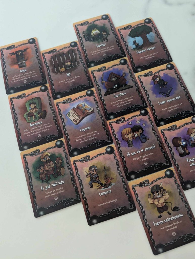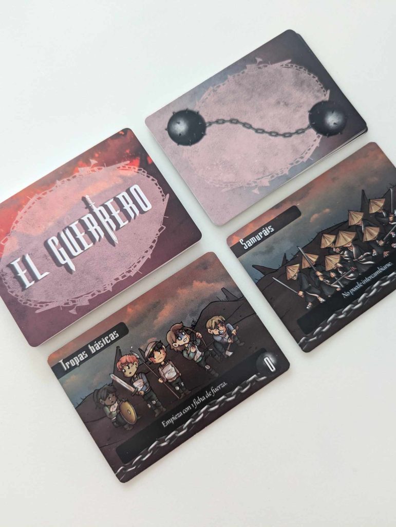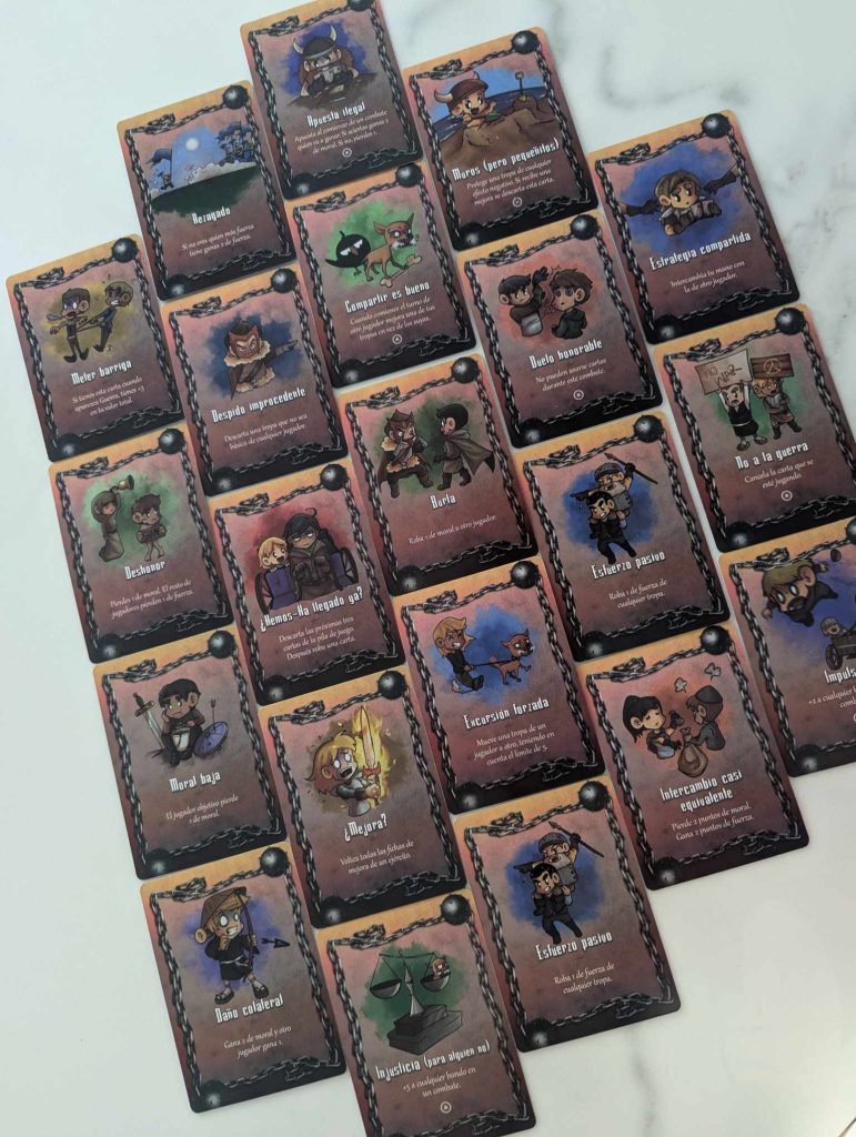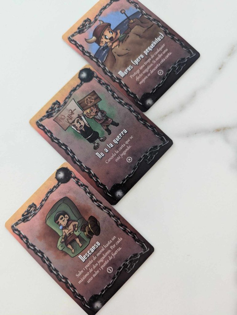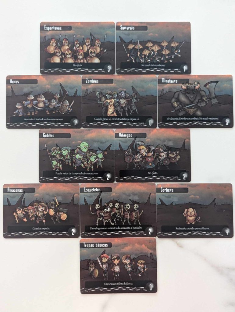 Comenzaremos el juego con nuestro tablero de general (comenzaremos con 5 puntos de Moral), 3 tropas básicas y 3 cartas de batalla en la mano.