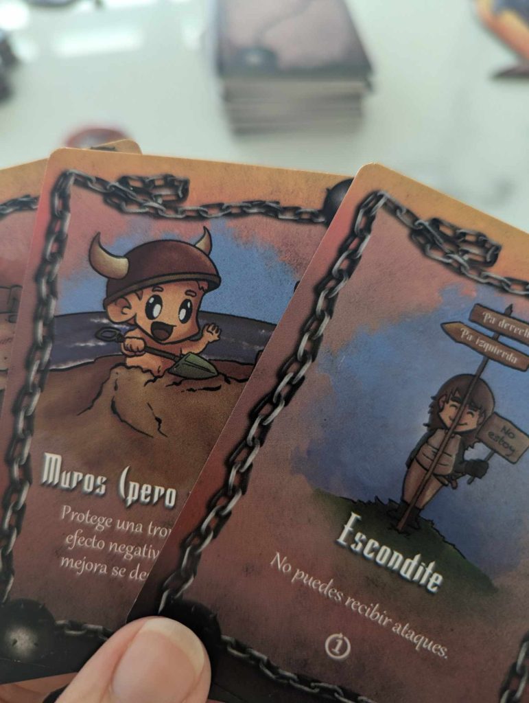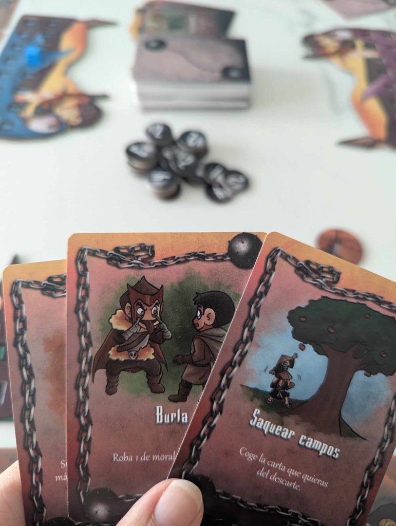 Por último, pasamos al final del turno, reponiendo nuestra mano hasta volver a tener 3 cartas (4 quien tenga la tropa de «Hunos). Si tuviéramos 3 o más cartas, no robamos.