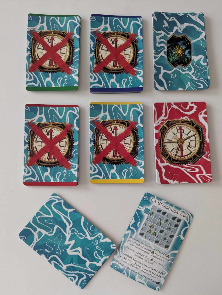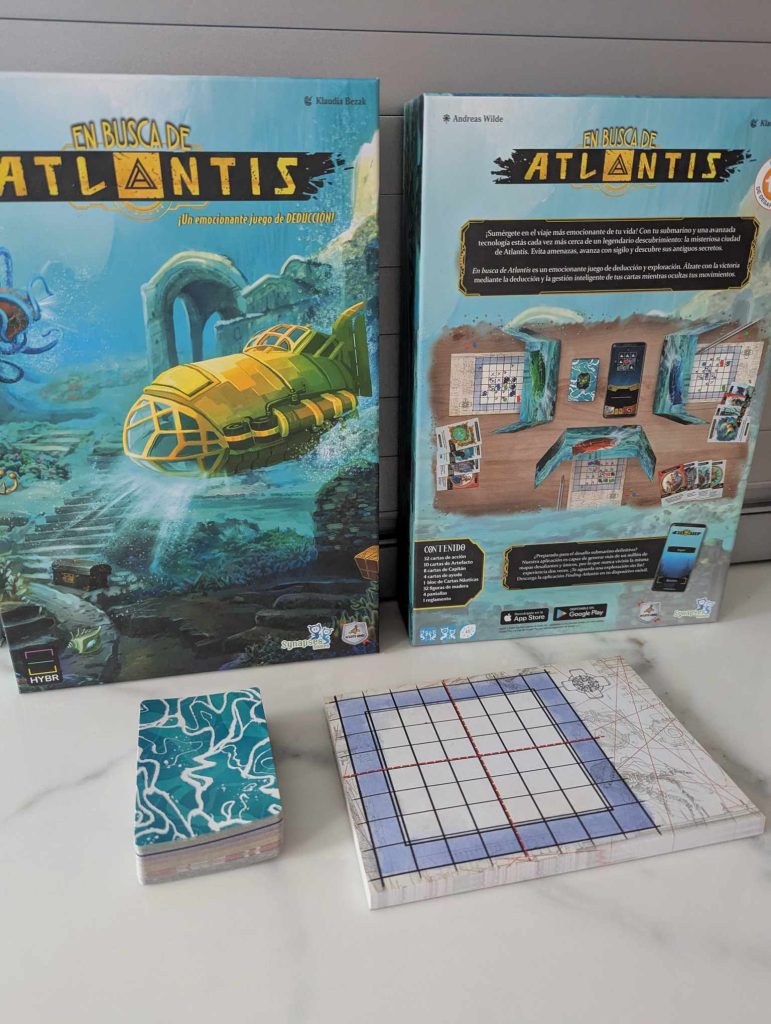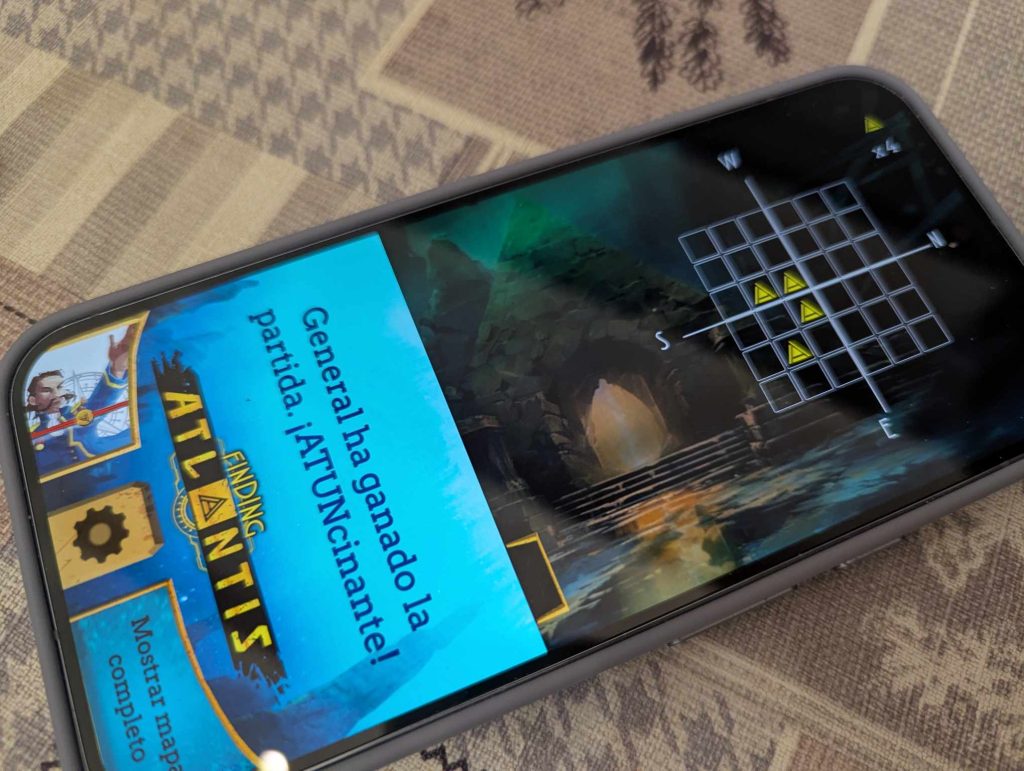 Para ganar, necesitas indicar la posición de todas las casillas de la ciudad sumergida. Usaremos la carta de Exploración en una de esas casillas y pulsaremos «Revelar Atlantis: resolver la partida» en el móvil, introduciendo las casillas de Atlantis (de manera digital en el móvil).