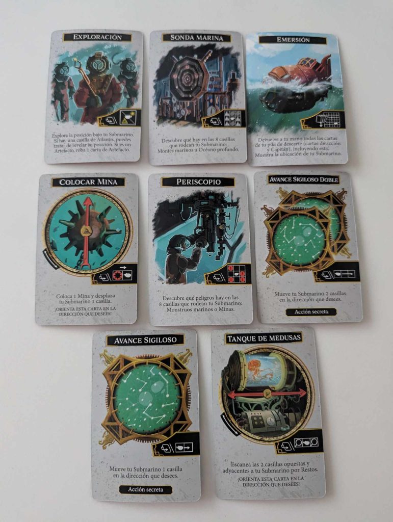 De uno en uno, registraremos nuestro color, capitán, el modo de partida, presencia de monstruos, tamaño del mapa..e iremos siguiendo las instrucciones, empezando por la ubicación para cada submarino y quién inicia la partida.