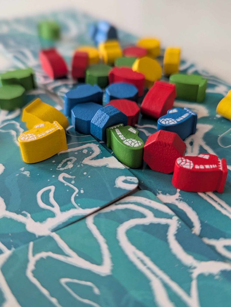 Cada jugador recibe una figura serigrafiada de su color y una figura de submarino de cada oponente.