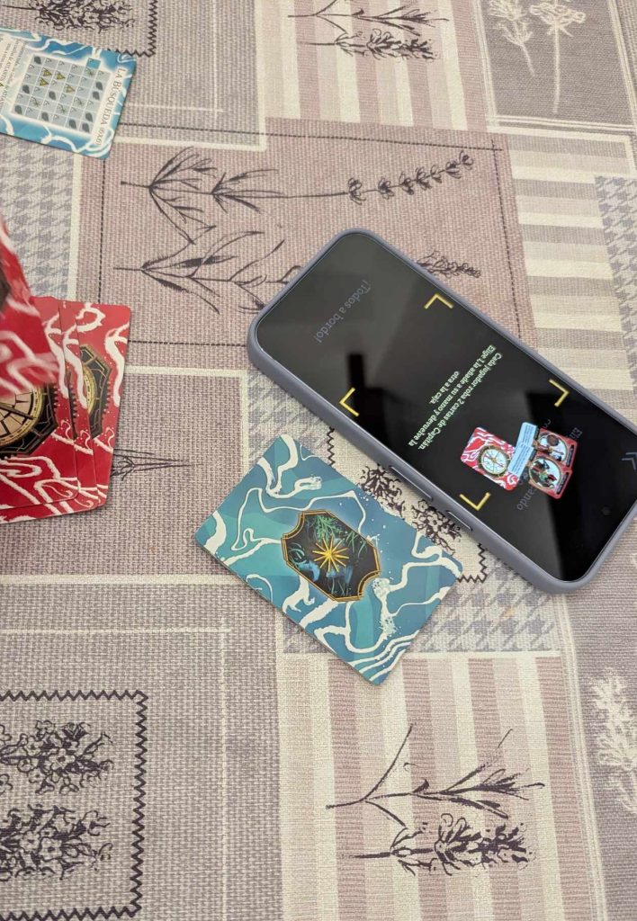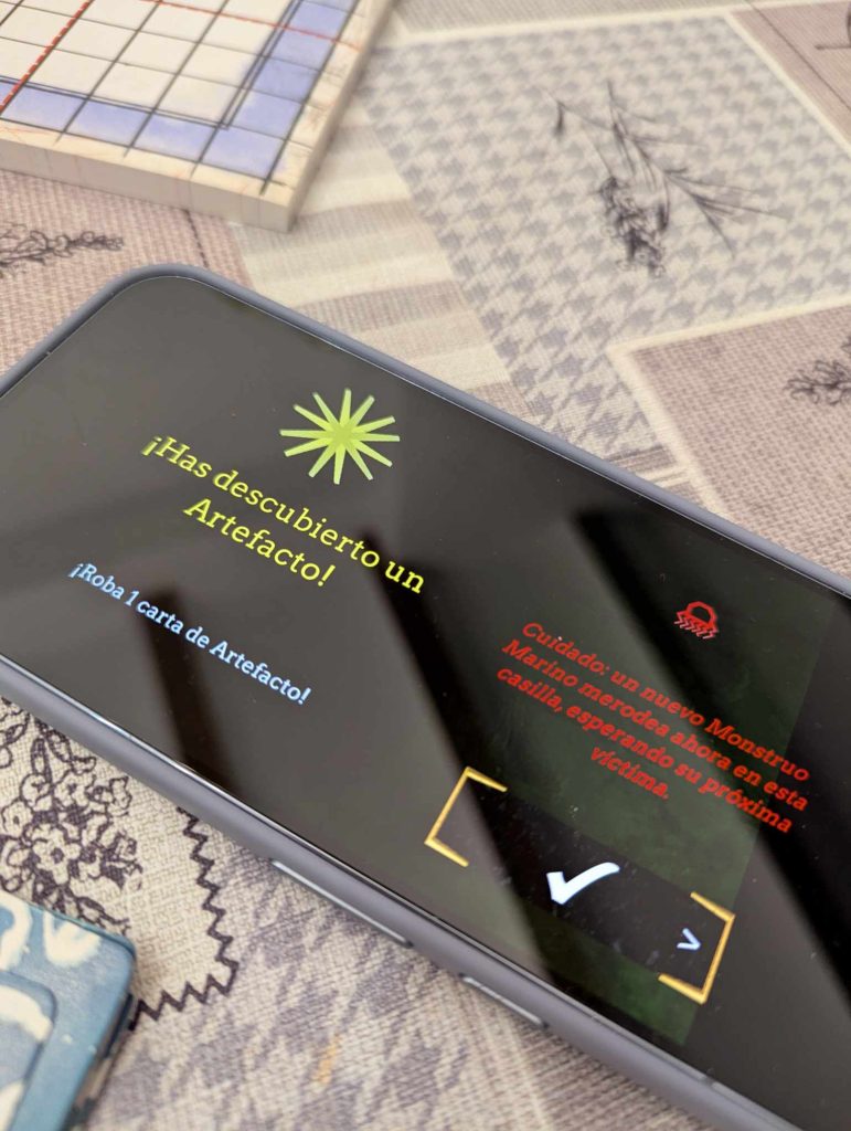 Dejaremos el móvil en el centro de la mesa, barajaremos las cartas de artefacto y las dejaremos boca abajo.