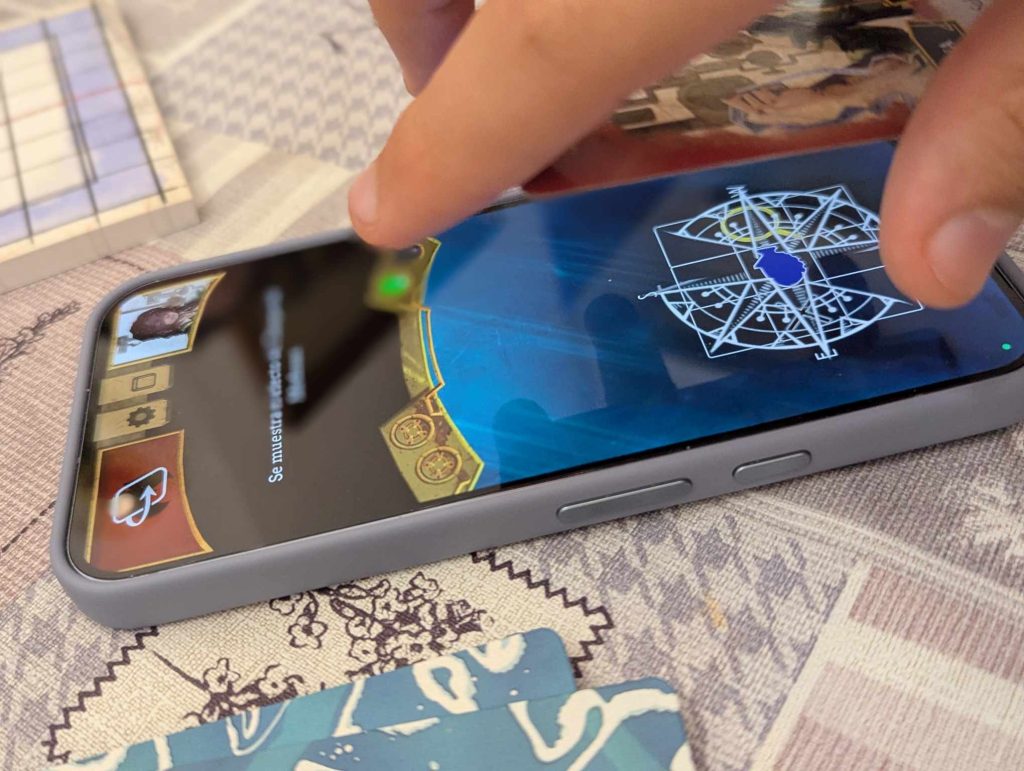 En tu turno, puedes realizar 2 acciones. Has de elegir una carta de acción y escanear el reverso con la cámara frontal del móvil. La aplicación nos dará datos importantes (que apuntaremos en secreto en nuestra Carta Náutica).