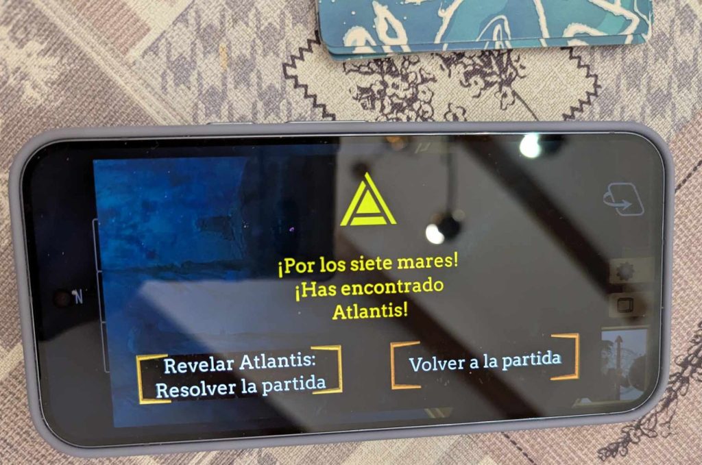 Necesitaremos instalar la aplicación Finding Atlantis, que nos guiará en la partida, hay un código QR en reglas (que no nos funcionó) y opción de descargarlo como juego en tu móvil.