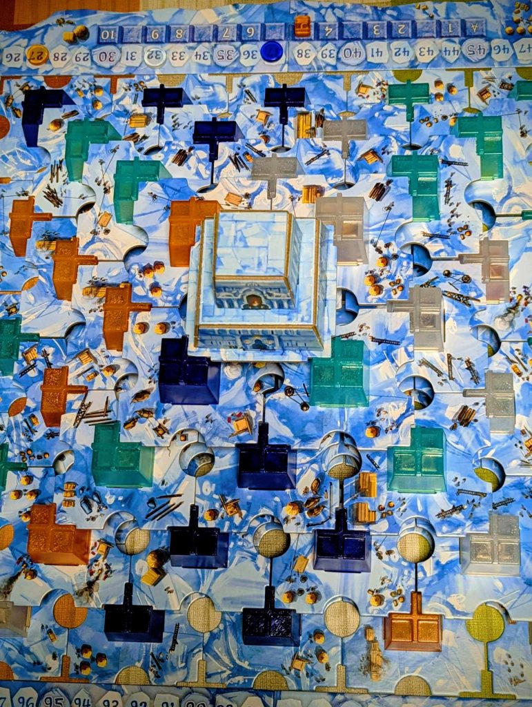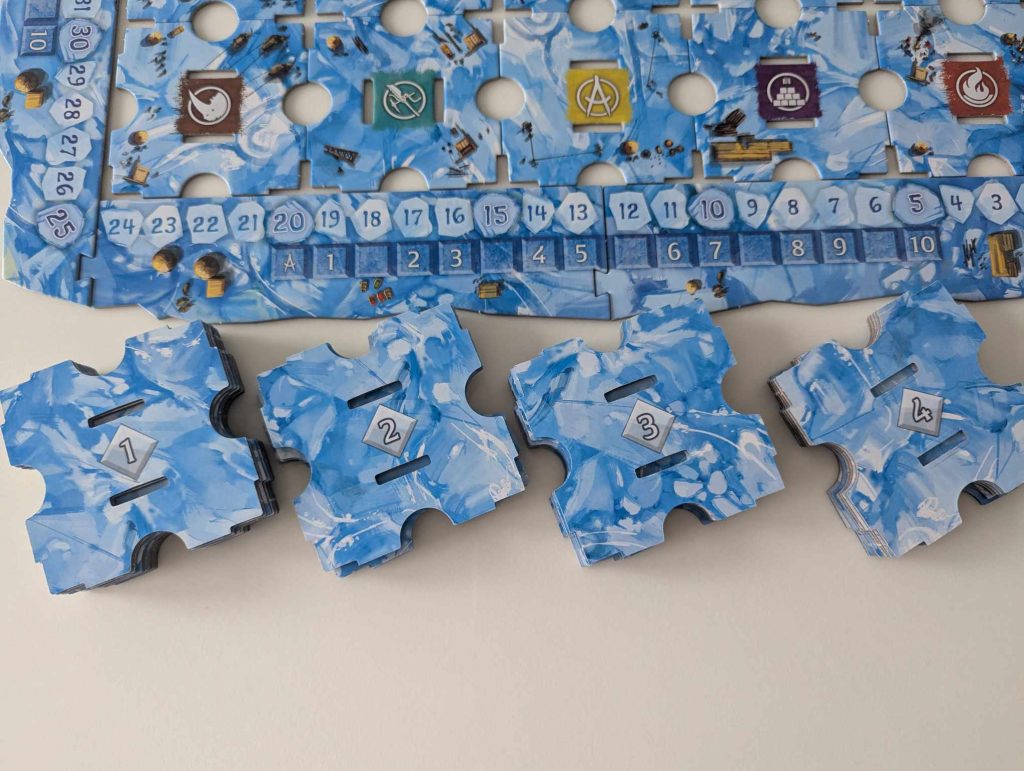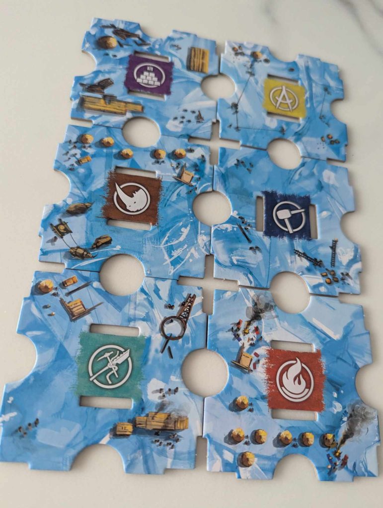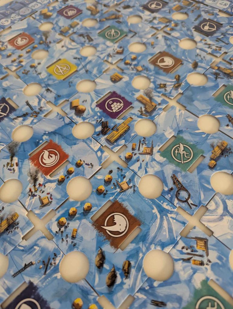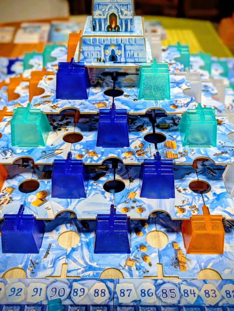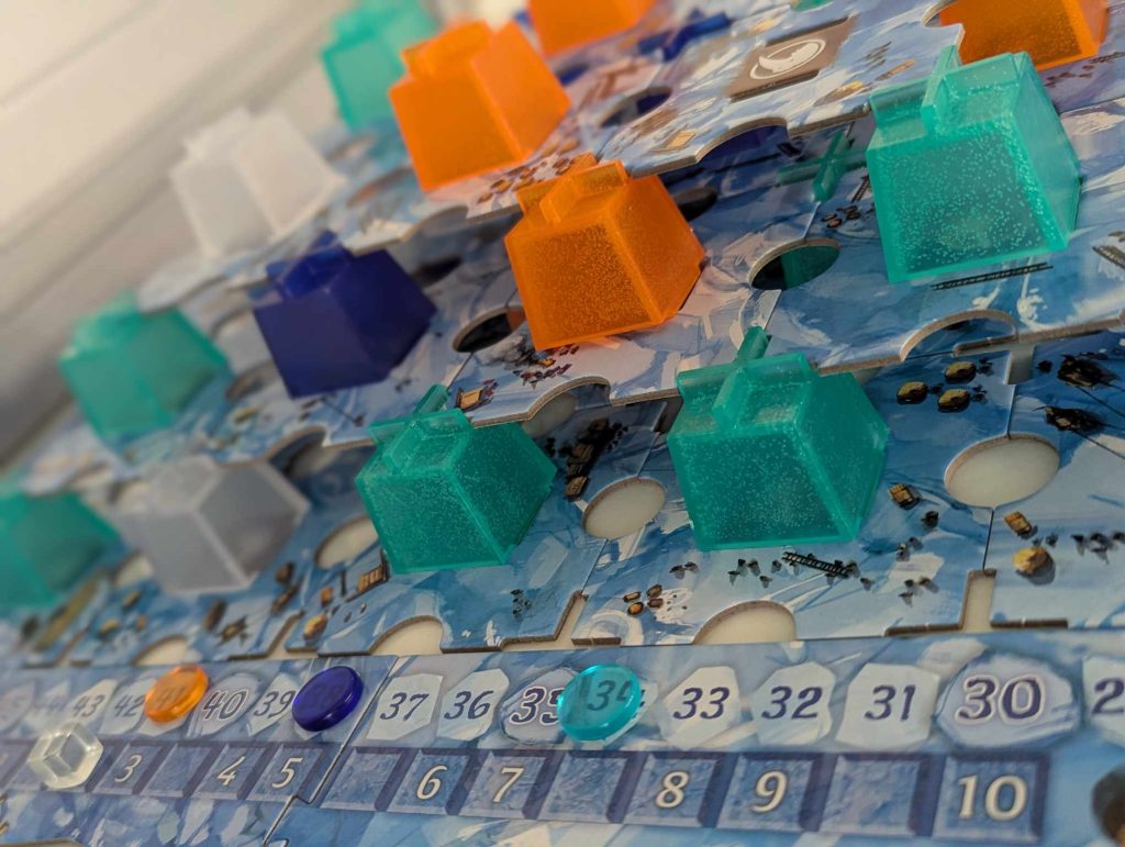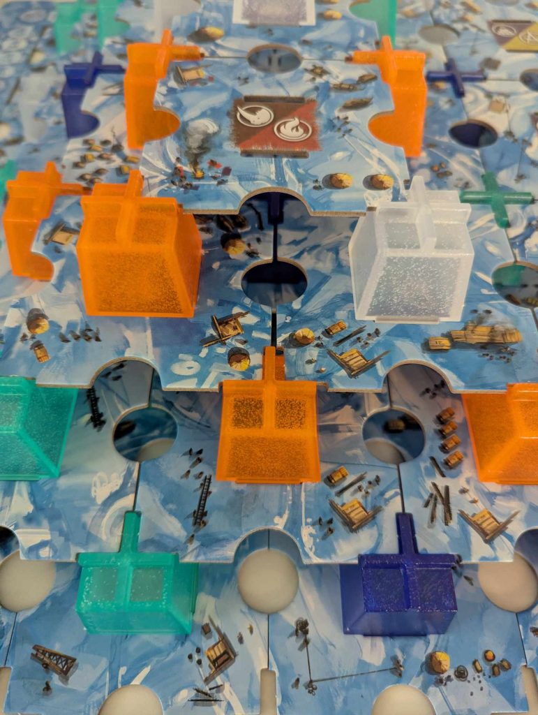 Juego espectacular en mesa, con un despliegue 3D. Además, los bloques de hielo (salvo quizás el color naranja) son muy apropiados para darle un aspecto gélido.