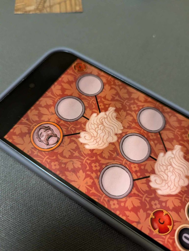 La partida gira en torno a esta pantalla de la app (carta S) en la que podremos indagar dándole a ampliar.