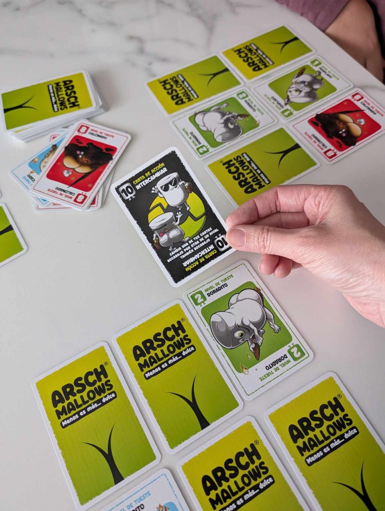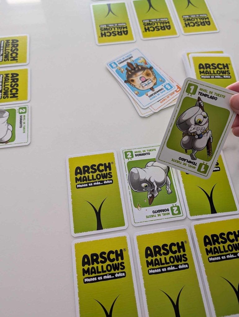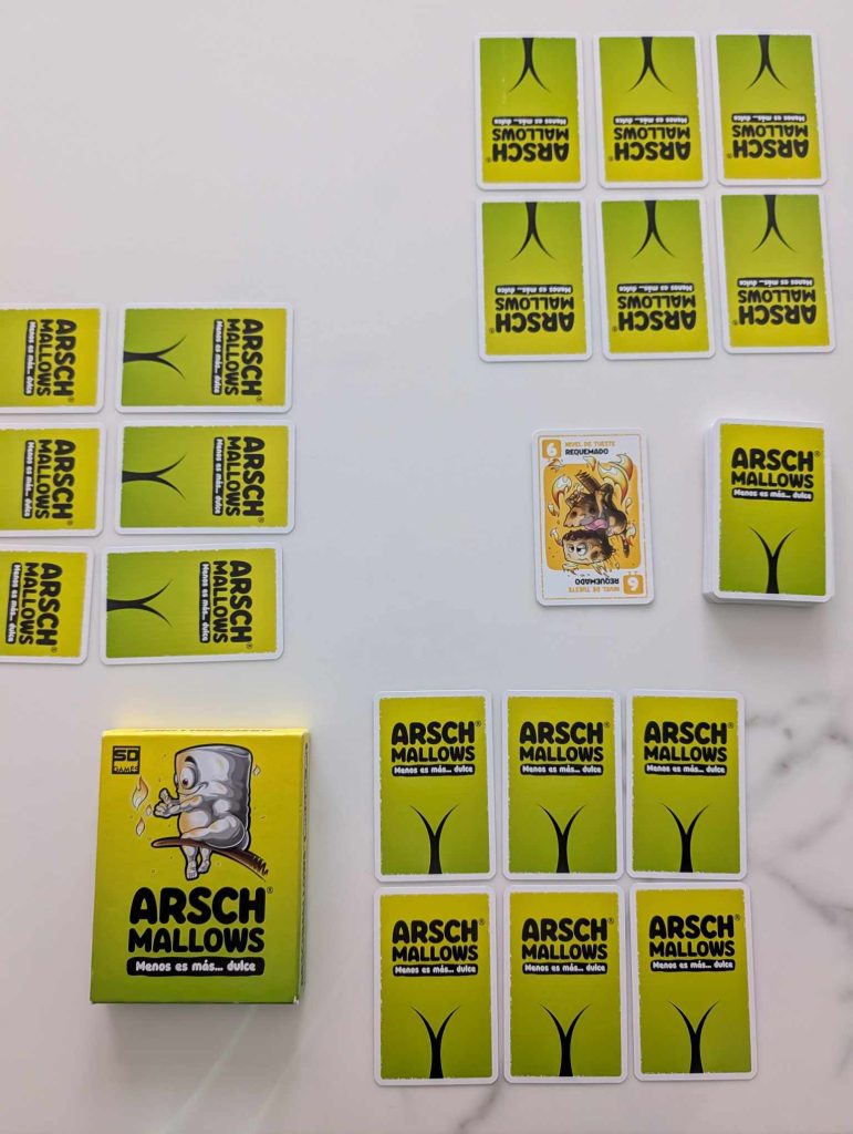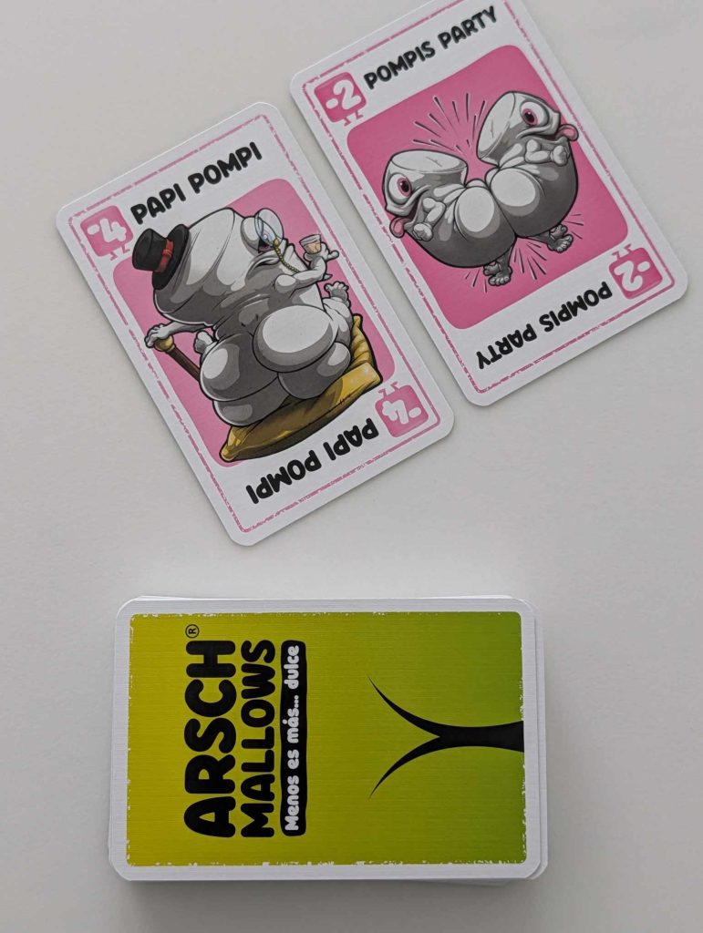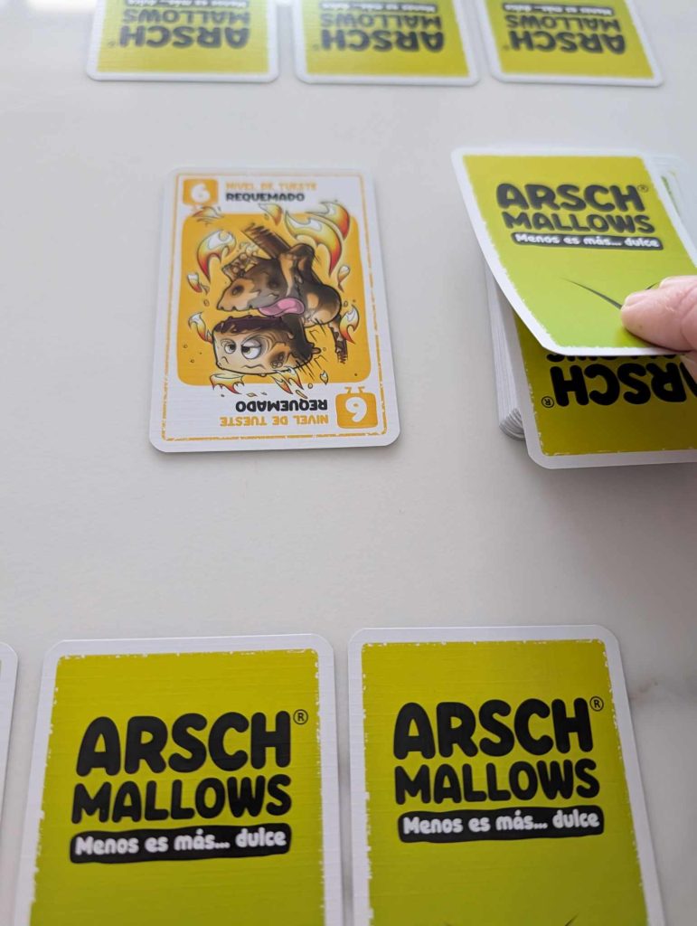 Las cartas que tengamos visibles, ya están «aseguradas». Si una persona tiene todas sus cartas aseguradas, se termina la ronda, al igual que si una persona al final de su turno cree que tiene la suma más baja de todas sus cartas, dice ¡Arschamallows! Y todos los jugadores tendrán un último turno. Si está persona se ha equivocado, se lleva como penalización el doble de sus puntos.