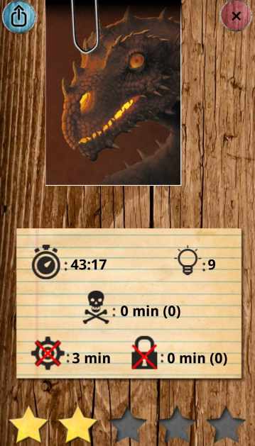 No hemos conseguido hacerlo en los 30 minutos estipulados y hemos pedido varias pistas al ver que se nos acababa el tiempo, pero aún así, hemos conseguido obtener 2 ⭐⭐.