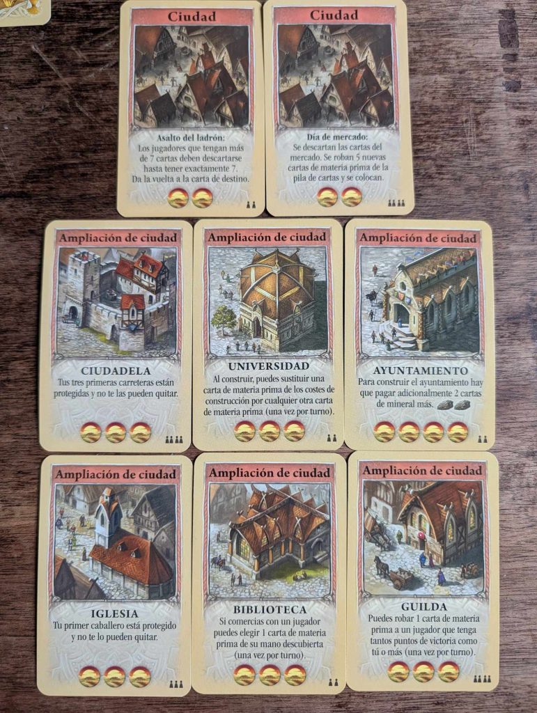 - Ampliación ciudad 3-4 PV. Cada carta tiene una ventaja permanente (No podemos construir 2 veces la misma ampliación)