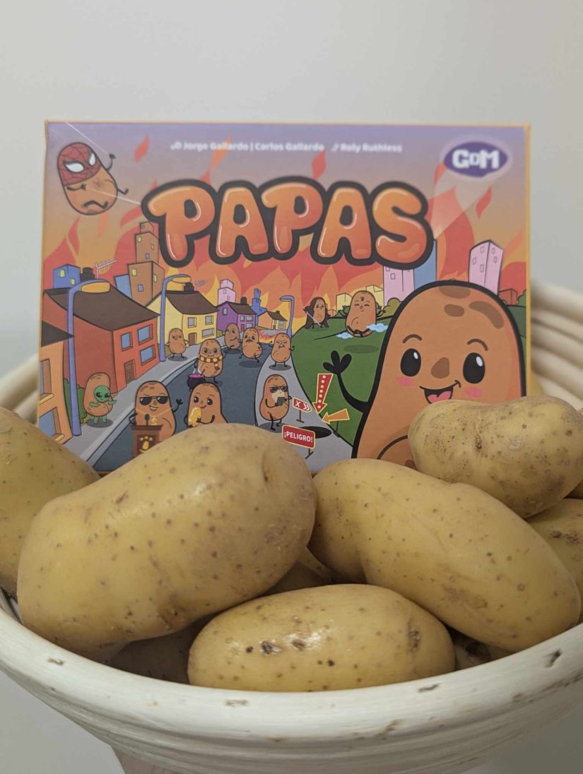 Juego de cartas familiar en el que tendremos que conseguir hacer tríos para ganar Papas de Oro.